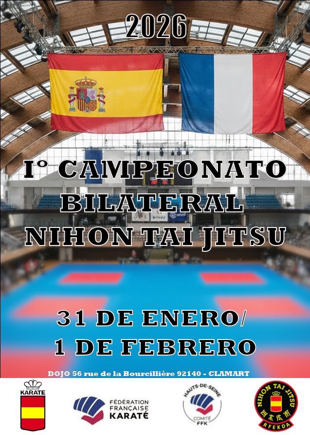 Durante los días 31 de enero y 1 de febrero se celebró en la villa parisina de Clamart el I Campeonato Internacional Bilateral de Nihon Tai Jitsu de la Federación Francesa de Karate y la Real Federación Española de Karate y Disciplinas Asociadas, con la presencia de más de 125 competidores españoles, 18 coach, 15 árbitros españoles y más de doscientos familiares desplazados para el evento. Desde la parte francesa contamos con la presencia de 100 competidores franceses y 15 árbitros además del equipo de organización liderado por Guy Lecaplain, presidente del Comité Hauts-de-Seine de la FFK.